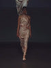 With its graceful halterneck design, the dress ties at the neck in a soft bow, creating a detail that is both delicate and striking. The deadstock fabric is the last of its kind, in a colour we call crushed rose, with parts of transparency the fluidity of the fabric, offering a timeless sophistication that transitions effortlessly from evening occasions to modern celebrations. Its clean silhouette allows the bow to take centre stage, giving the dress a sculptural yet understated beauty.